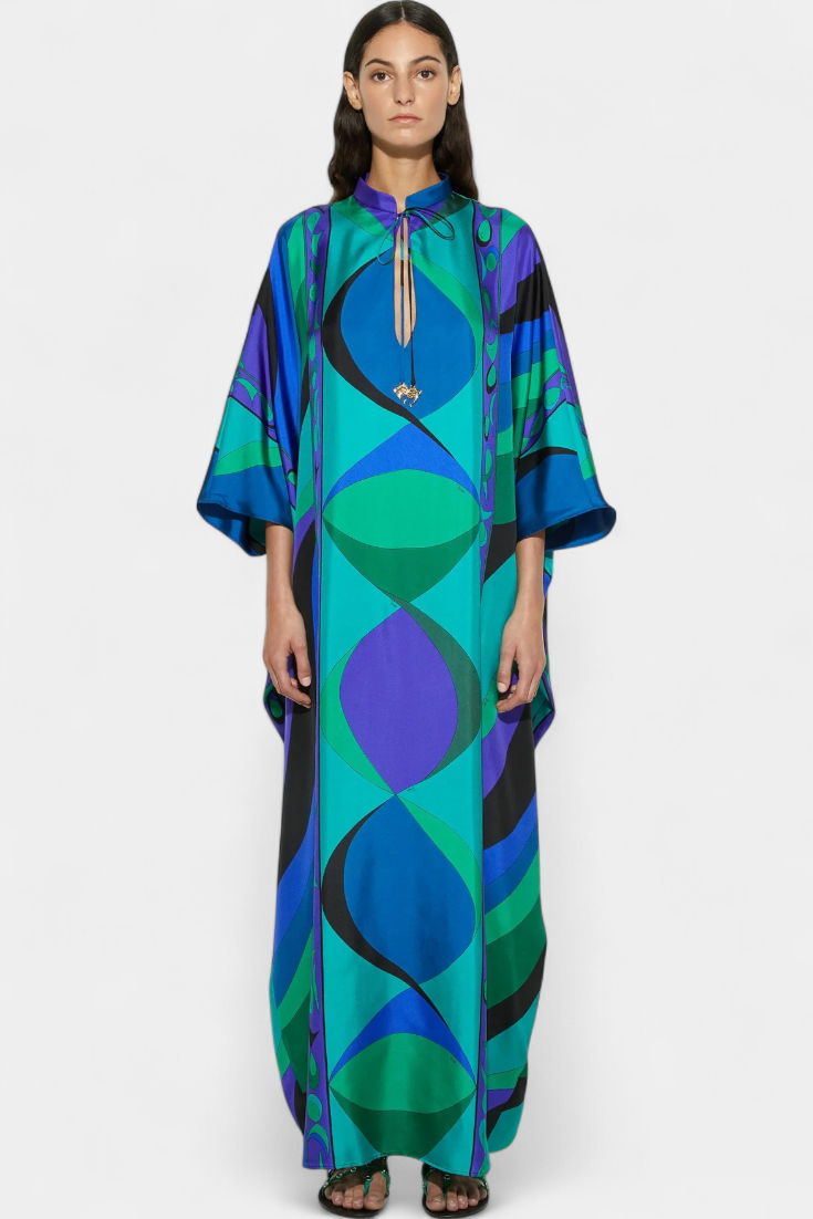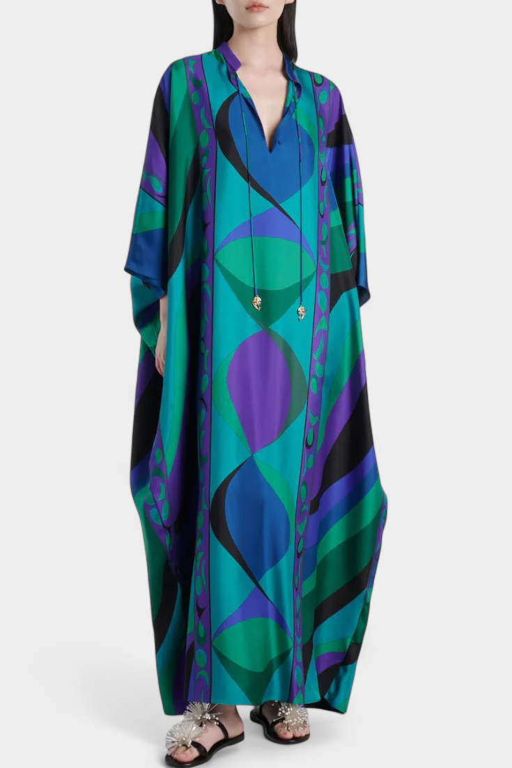 הקפטן פיורלה מציע סילואטה זורמת ורפויה, שמחבקת את הגוף שלך ומאפשרת לך לנוע בחן. ההדפס Iride, עם הספירלות הפסיכדליות שלו, מוסיף נופך אומנותי לכל הופעה.